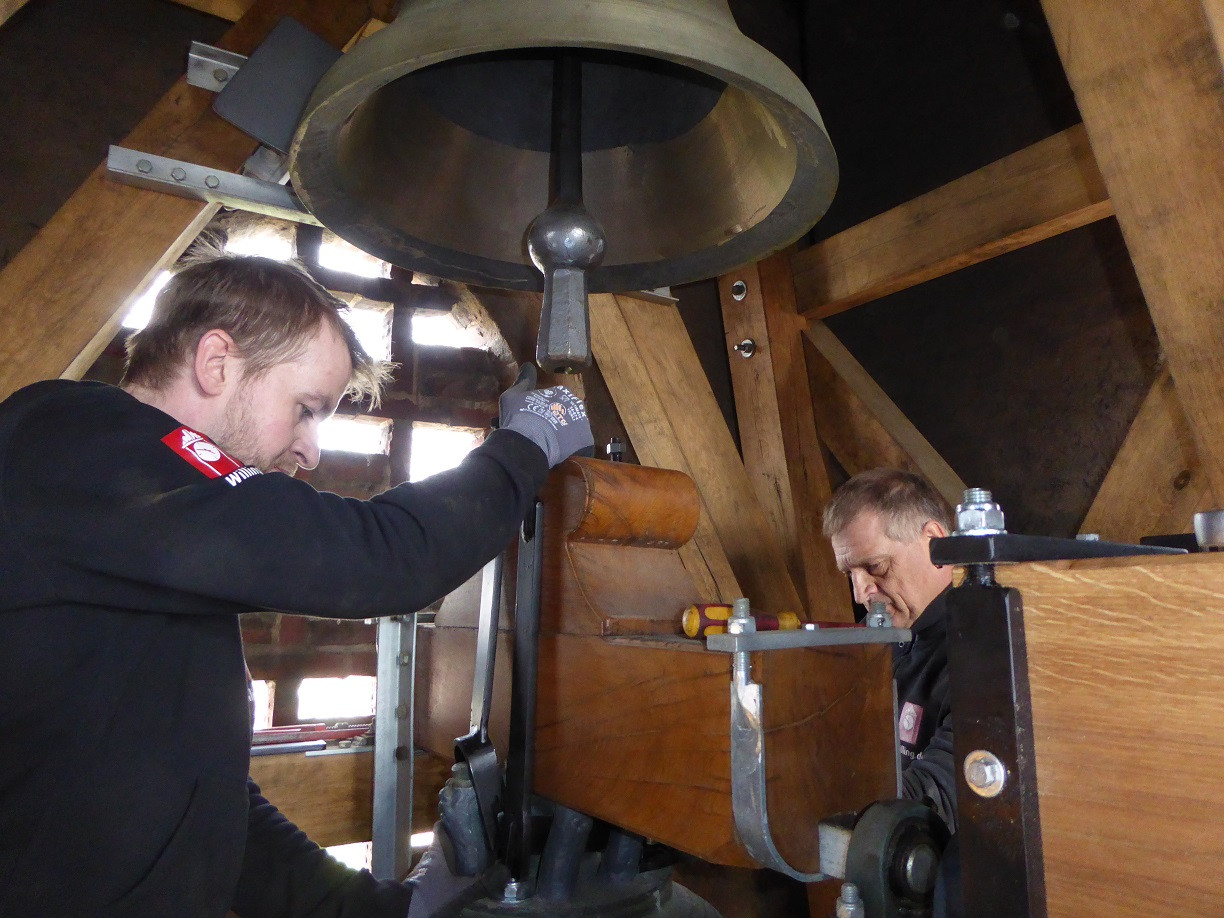 Jetzt wurde das Joch ausgetauscht, fachgerecht montiert und es erklingt wieder das volle Geläut!